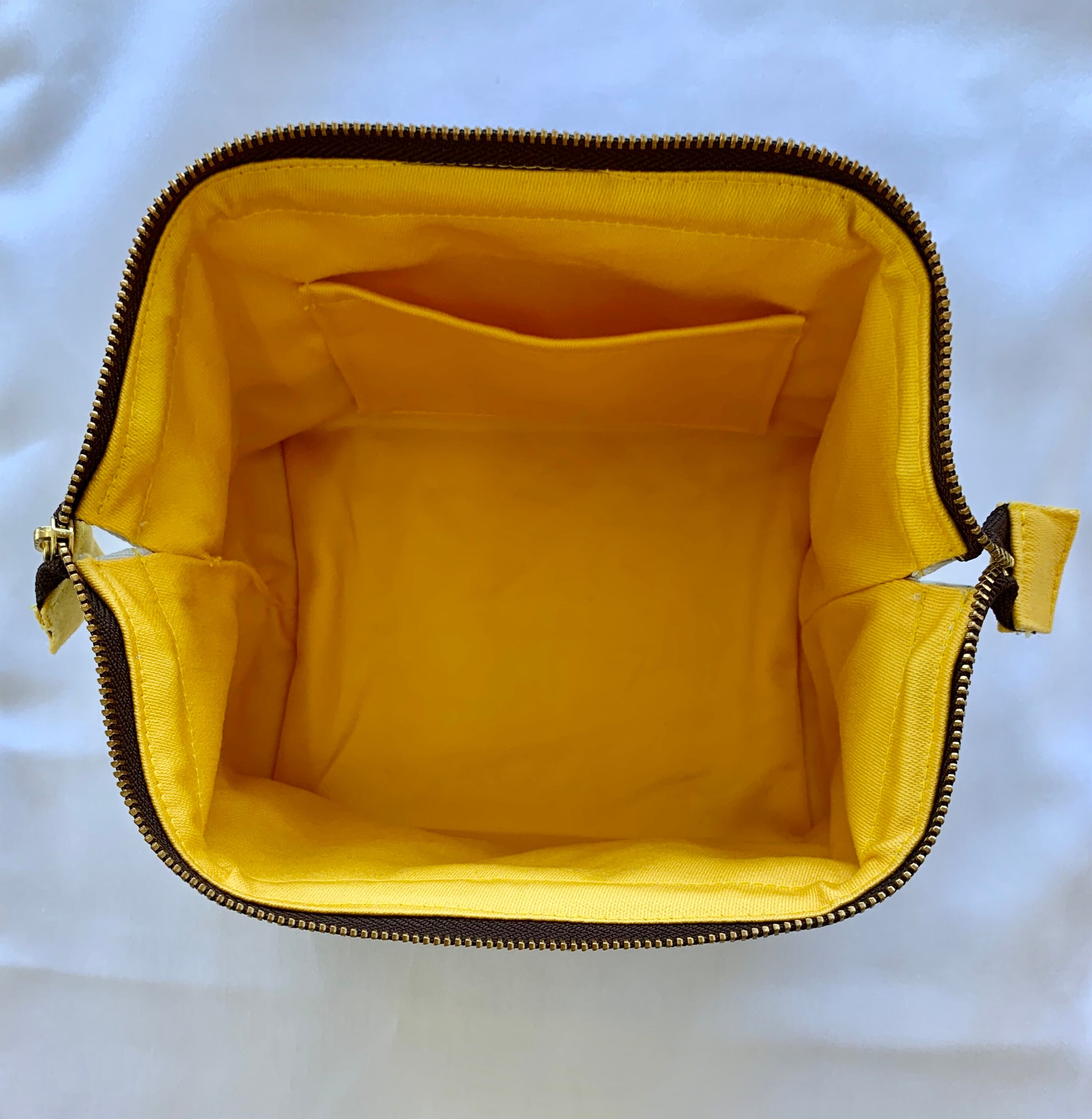 無地のところは、パステルブルーのお色より少し薄い色です。内側はサフランイエロー色です。