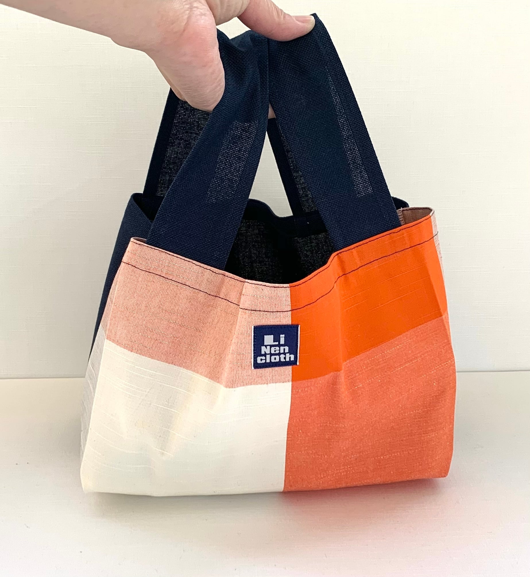 綿100% エコバック コンビニ チェックオレンジ×ネイビー