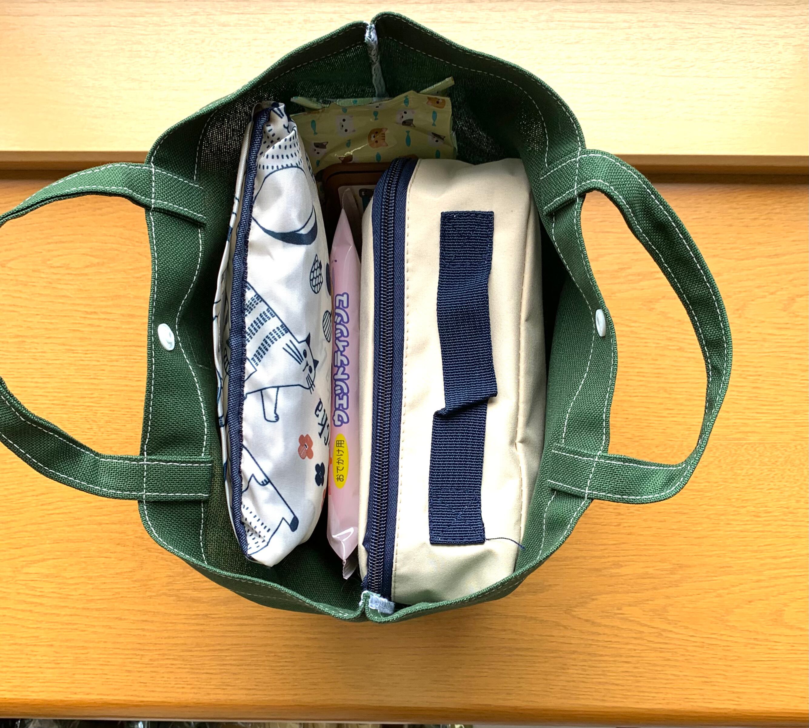 オムツ、おしり拭き、オムツ交換シートなどちょっとしたお出かけの時にまとめて入れて使うと便利です。