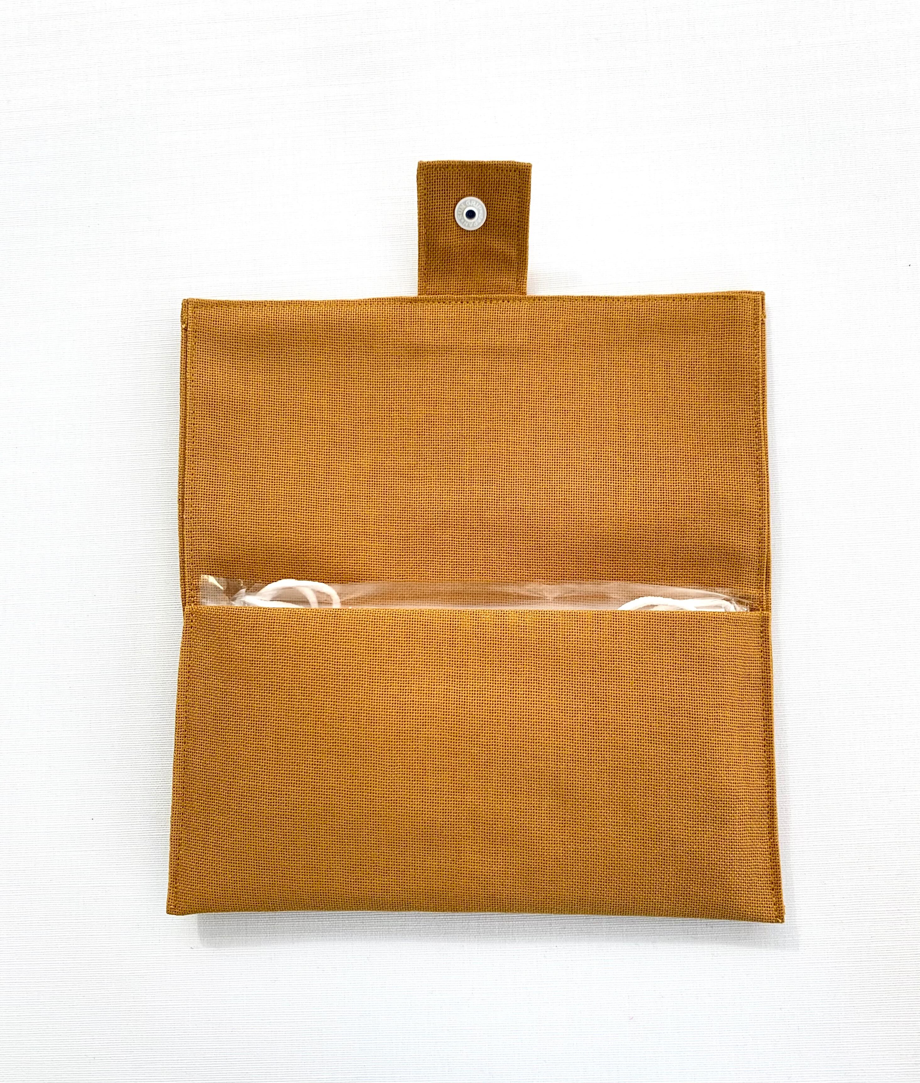 不織布マスクを入れる場合、綿商品の為 そのまま入れていただくと摩擦がありますので少し入れにくいです。画像にも載せていますが、フィルムケースなどに入れてから収納していただくとスムーズに入ります。画像の抗菌フイルムケースはダイソーにて12枚入りで購入致しました。