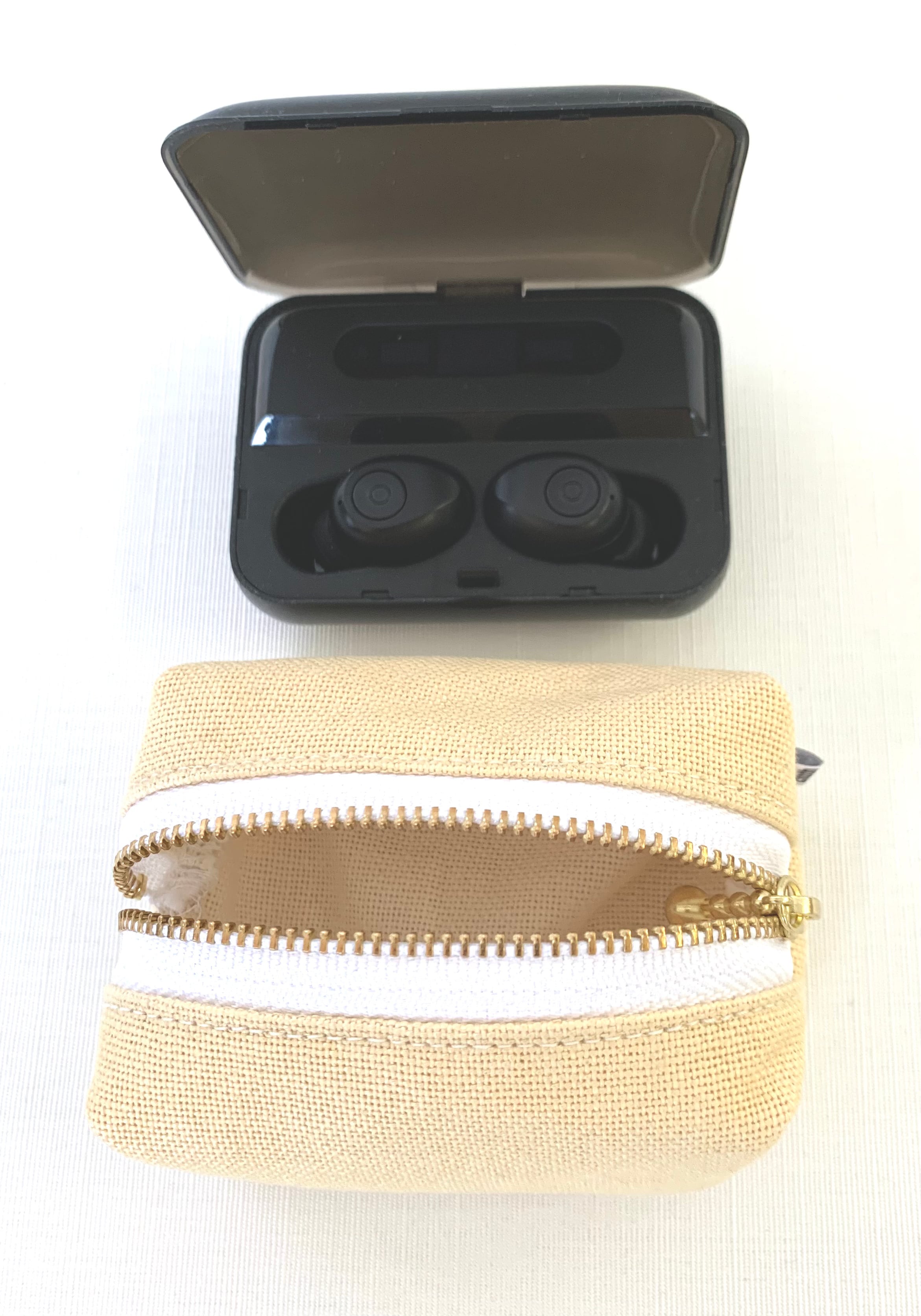 携帯のケーブルを入れたり、イヤホンを入れたり