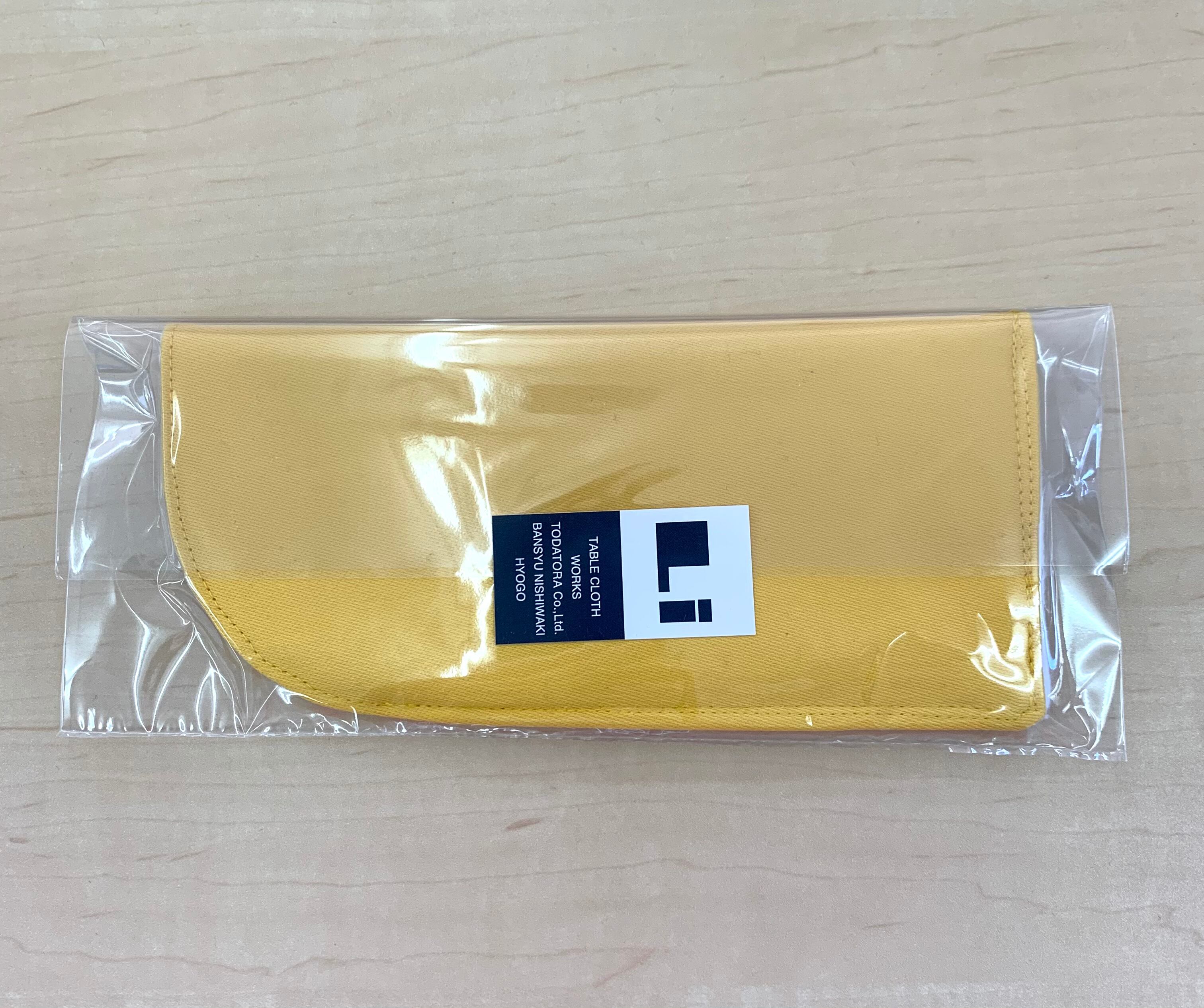 眼鏡入れ お色 レモンイエローにネイビーを合わせて、薄いグレーのラインを入れました。