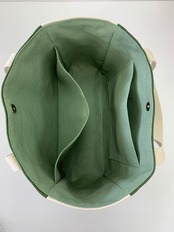内側の生地はビーンズグリーンを使って爽やかに仕上げました。(内側の生地はお好きなお色でお作り致します。)