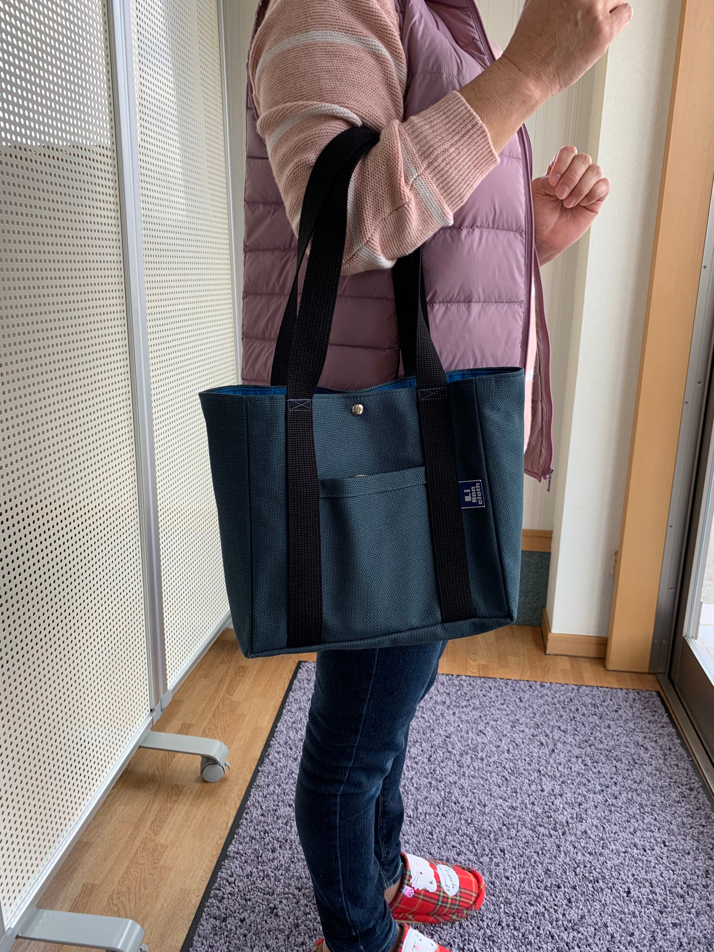 アイアンネイビー(鉄紺)に黒の持ち手を合わせてシックに仕上げました。男性にもおすすめです。