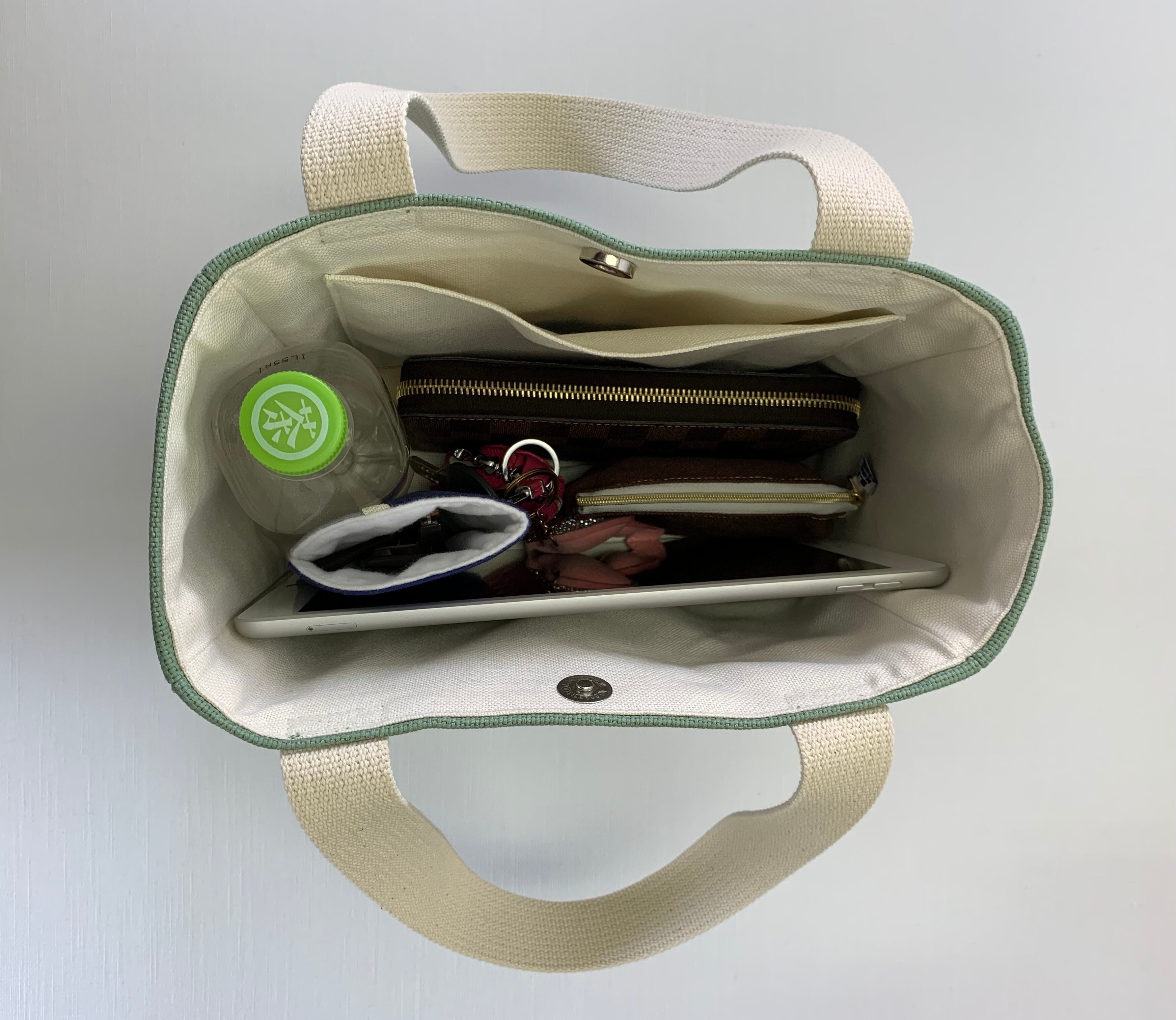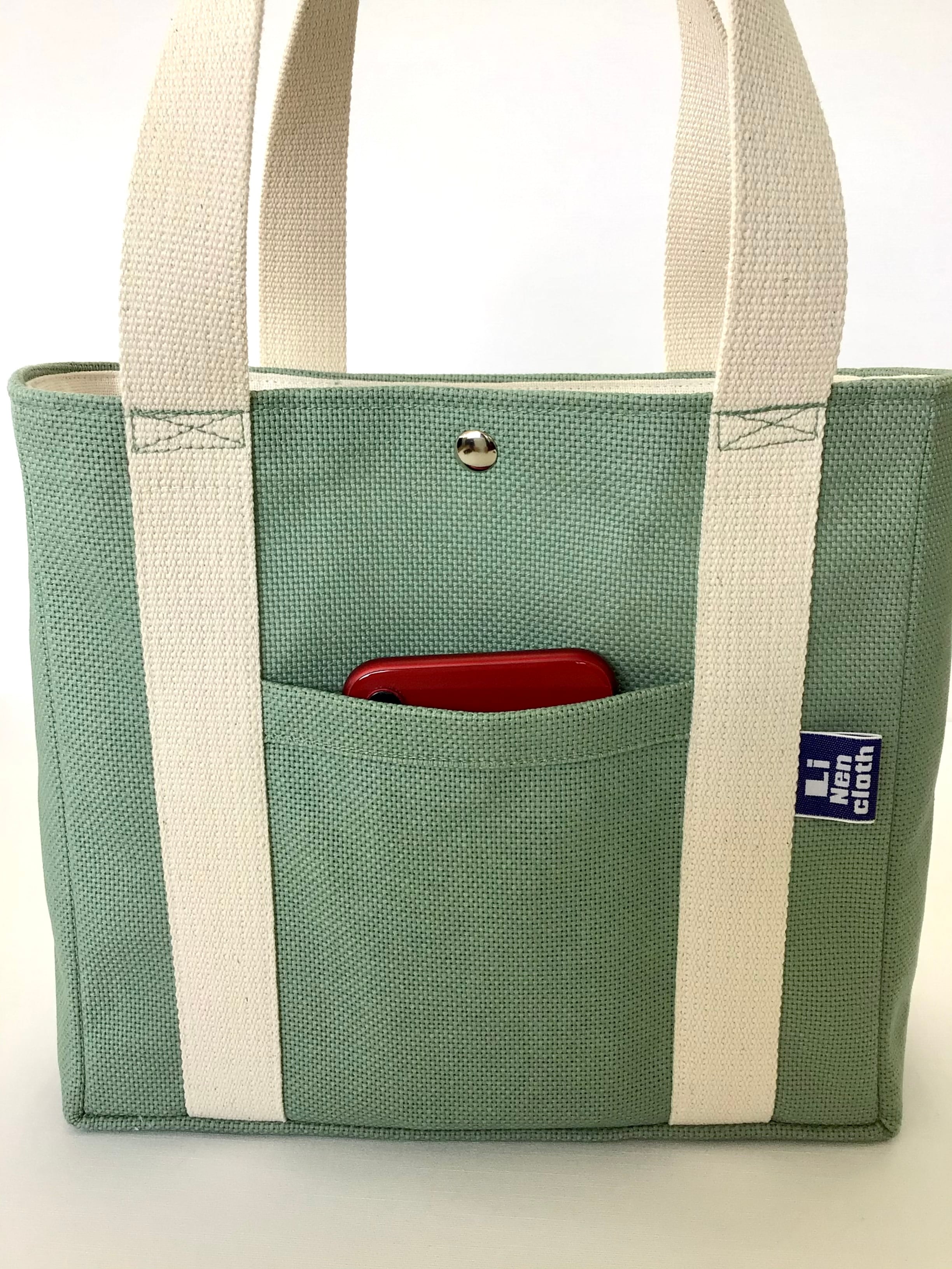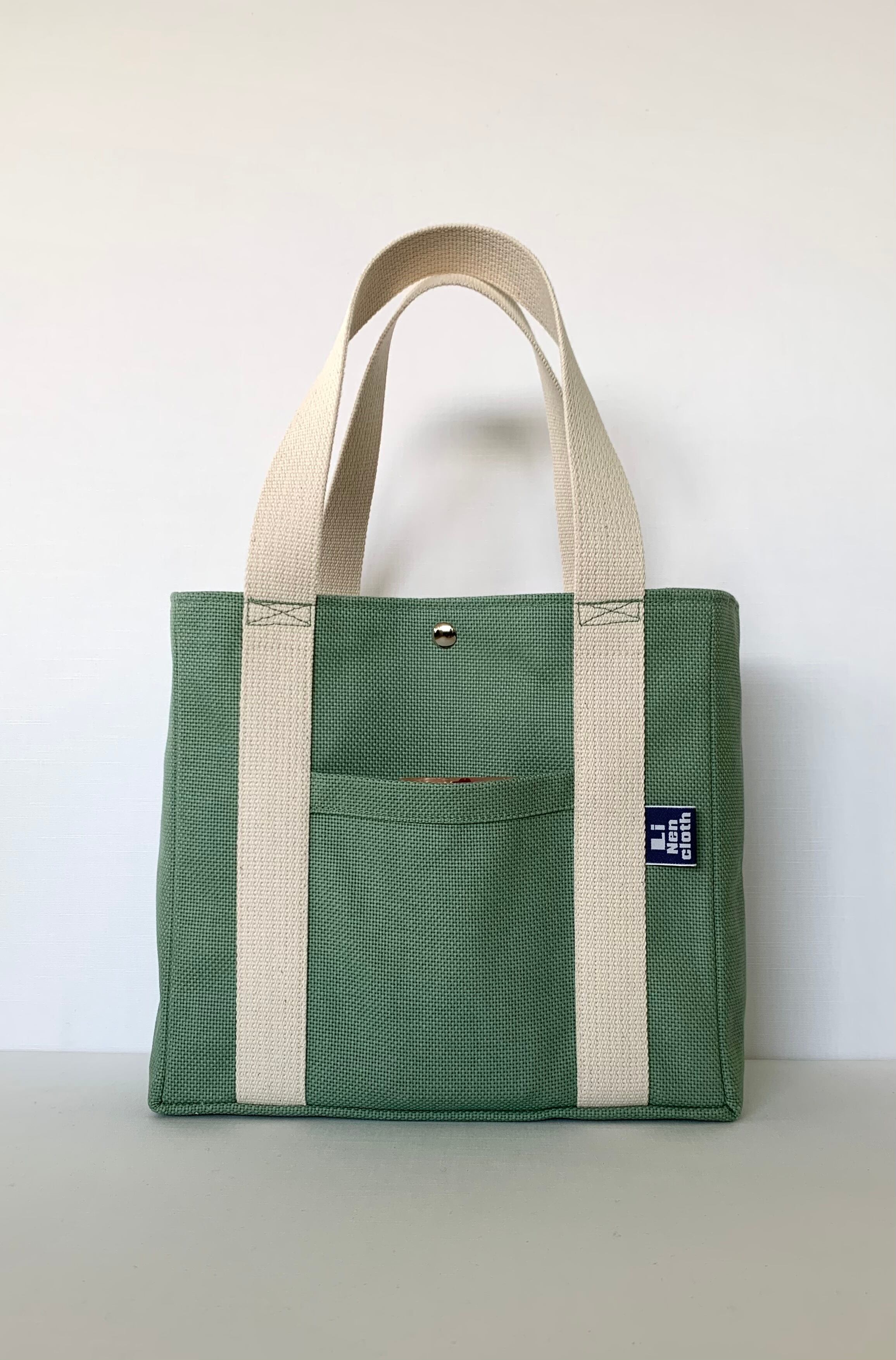 リーフグリーンにオフホワイトの持ち手を合わせて爽やかに仕上げました。