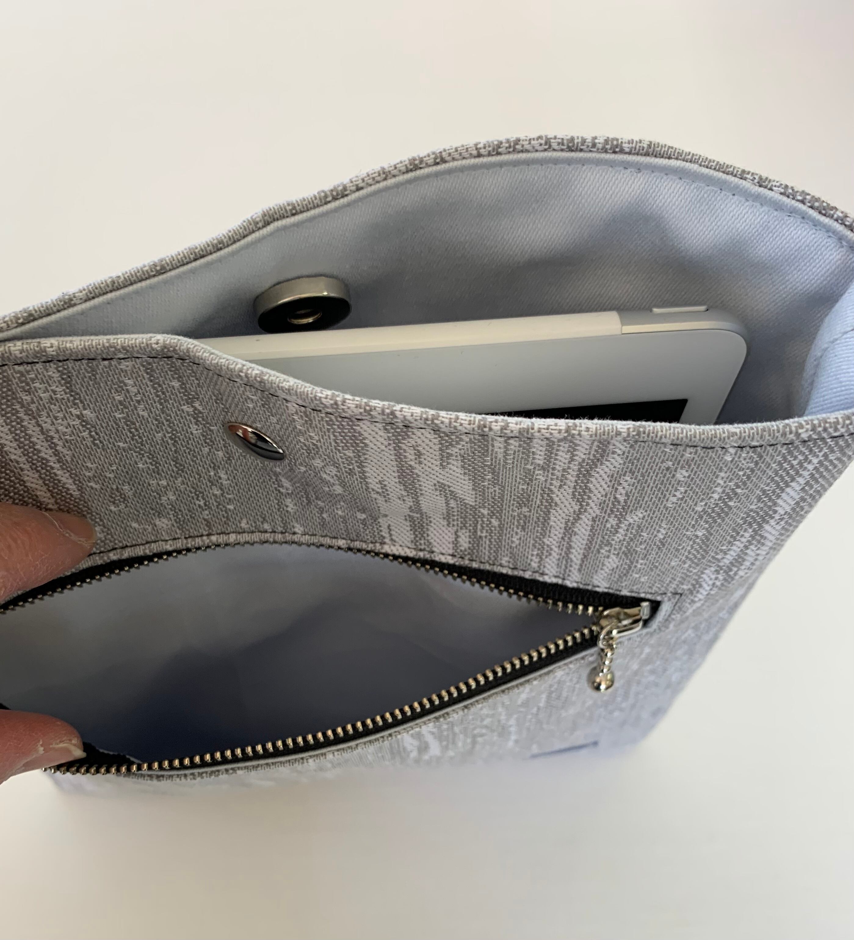 マジョリカ柄のシルバーカラーでボディバッグを作りました。