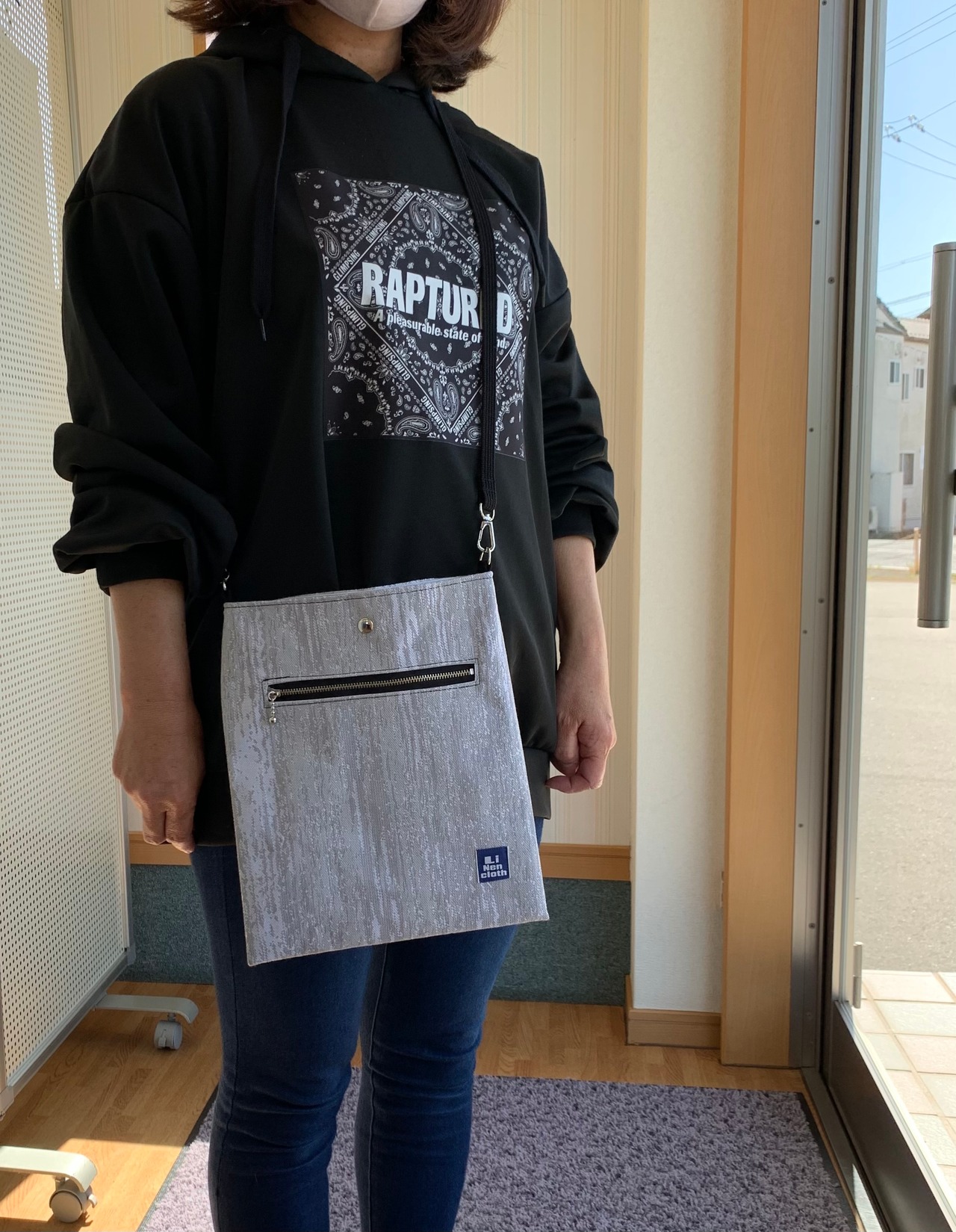 表生地には厚手の接着芯を貼って貼り感をだしています。