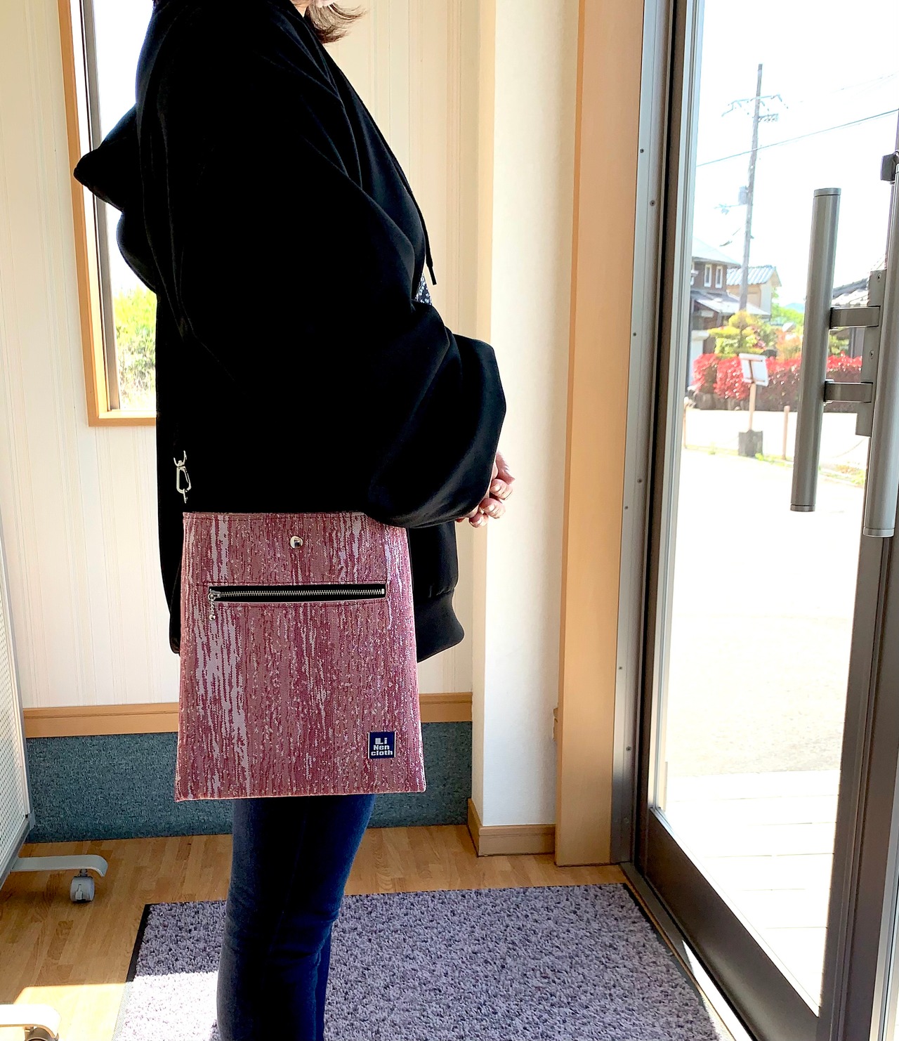 表生地には厚手の接着芯を貼って貼り感をだしています。