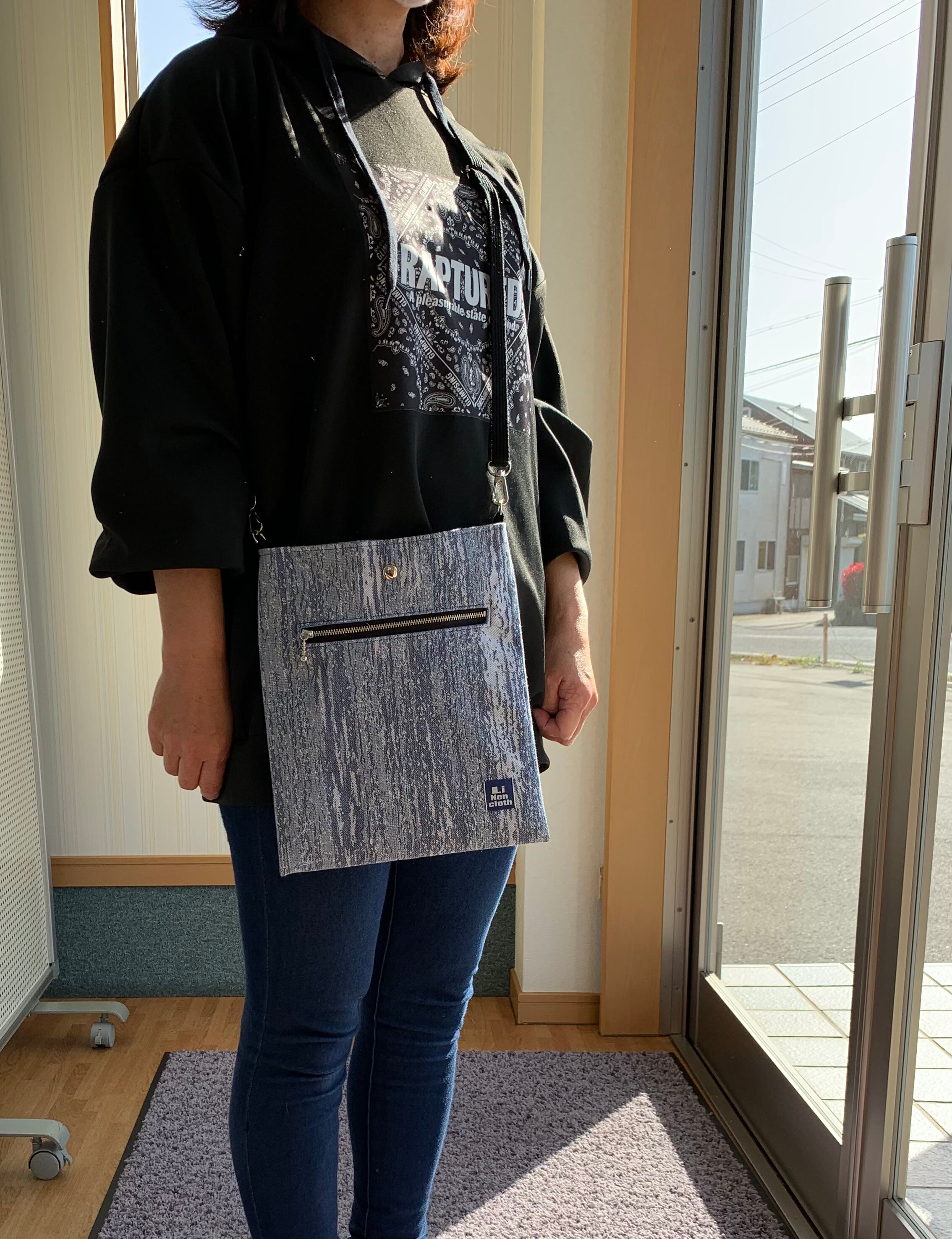 マジョリカ柄のブルーカラーでボディバッグを作りました。
