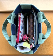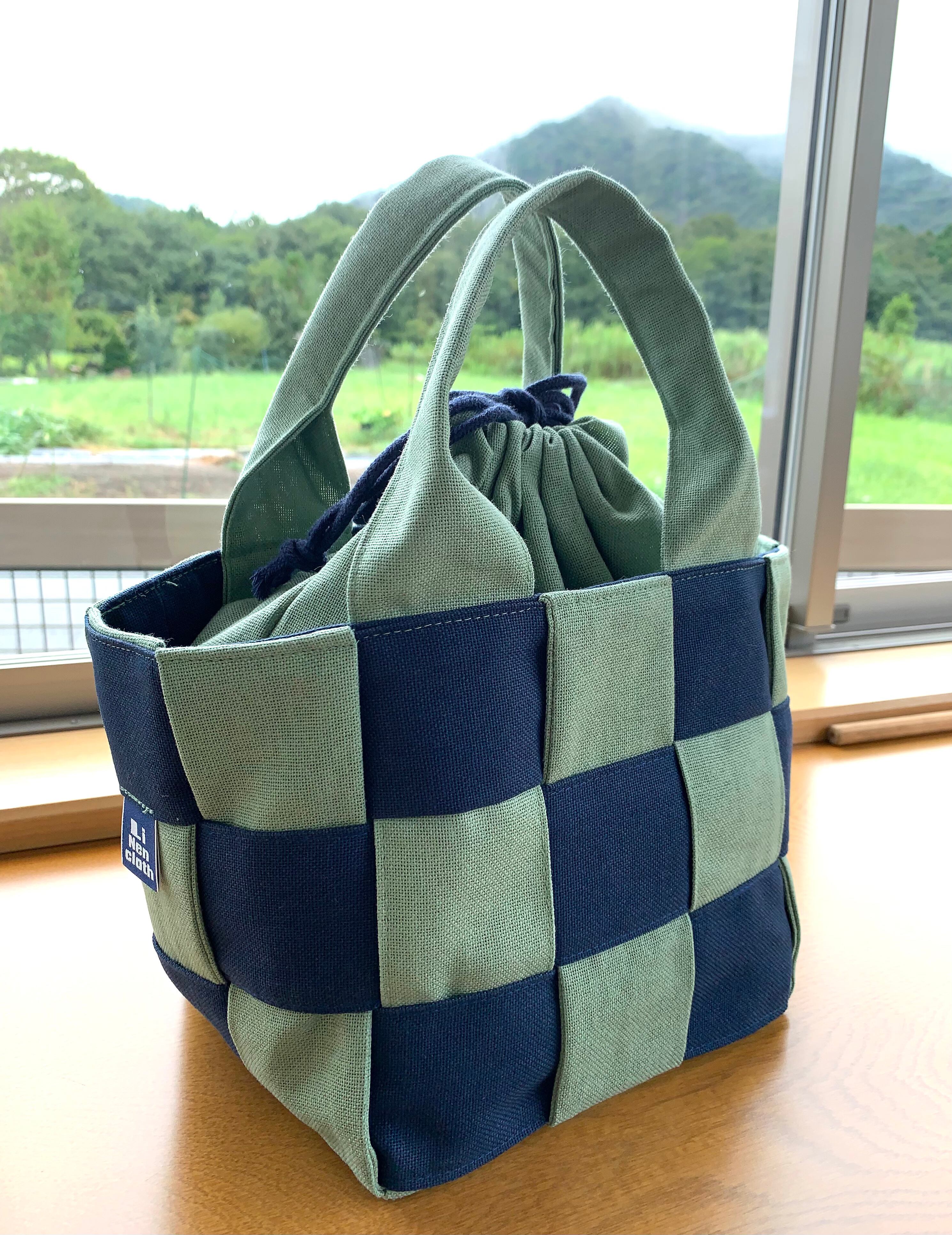 本体バッグは帯状にした生地を編んで仕上げており、優しい感じに仕上げるため隙間が空いております。形が崩れないように、所々ボンドで止めておりますが、小銭やヘアピンなど小さい物をそのまま入れられますと落ちてしまう場合があります。小さな物は巾着袋の中へお入れ下さいませ。