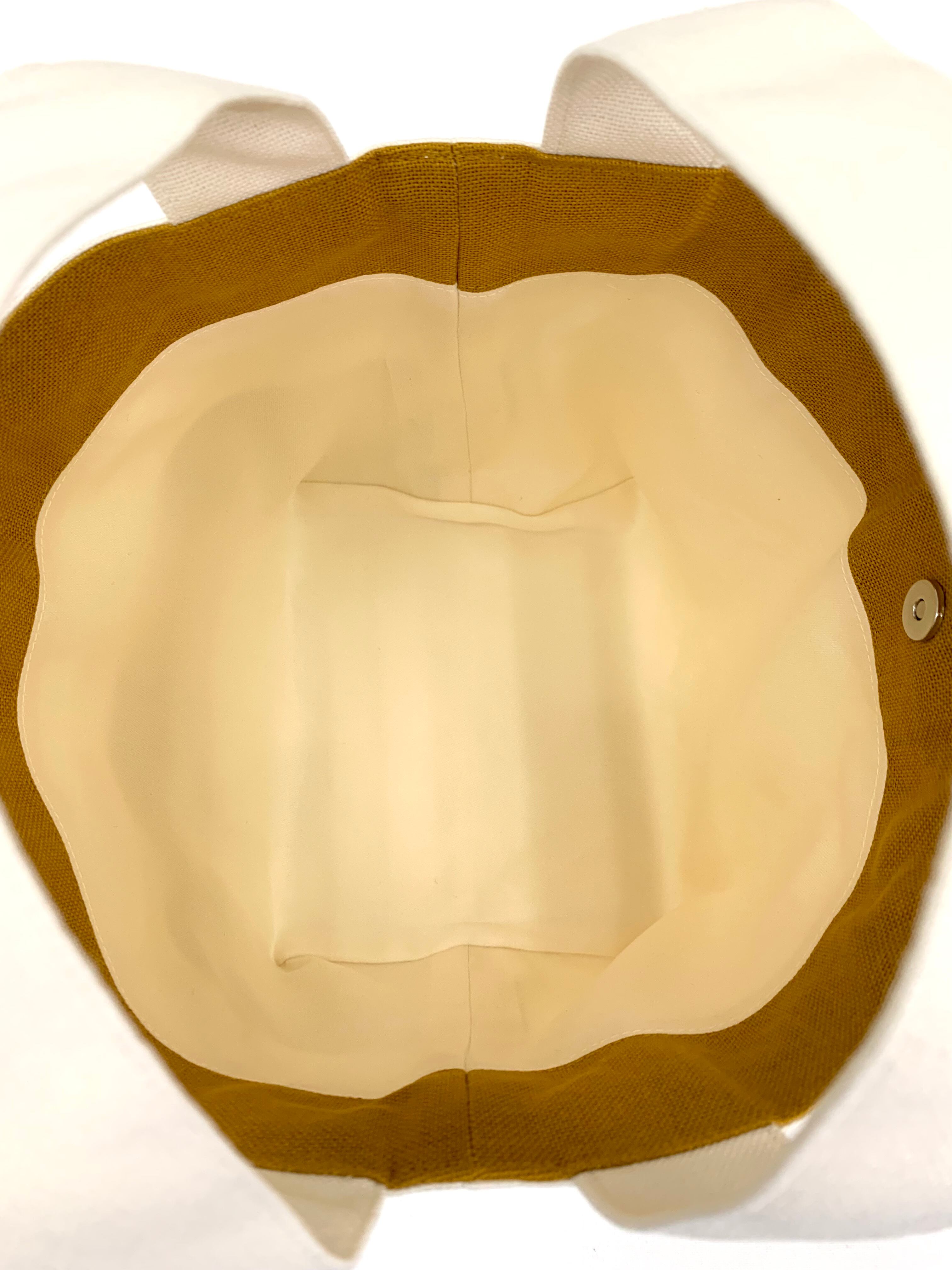 (表生地とポケットに厚手の接着芯を使用しております。)
